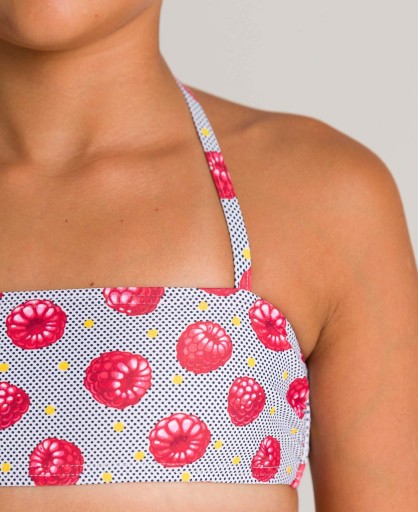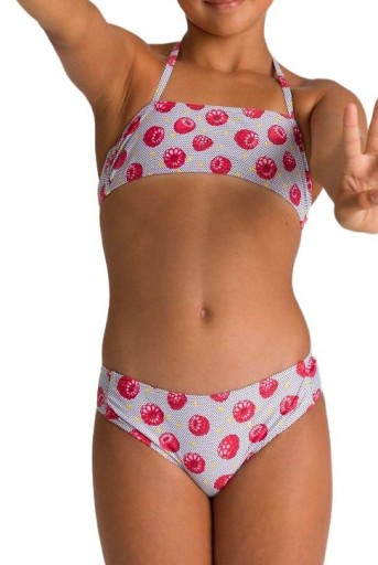 Stylowe bikini typu bandeau z osłoną przeciwsłoneczną dla dziewczynek materiał arena MaxFit: odporny na chlor i słoną wodę, ochrona UV UPF 50+, szybkoschnący, doskonały komfort noszenia 80% poliamid, 20% elastan arena Dziewczęce Bikini Bandeau Tropikalne Lato Model: 3087 Top z zapięciem na zatrzask z tyłu i regulowanym paskiem na szyję, z podszewką z przodu Idealny dla rekreacyjnych pływaków fitness 80% poliamid, 20% elastan