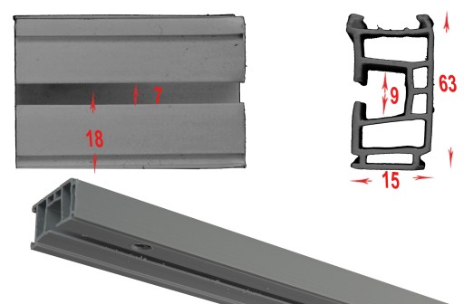 CZARNA SZARA szyna sufitowa PCV pojedyncza 2,9 m