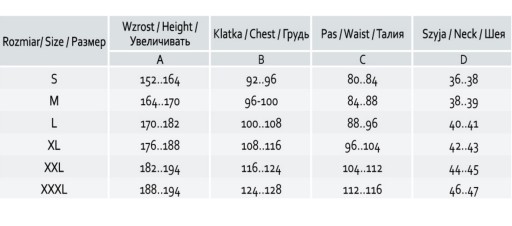 - ściągacz w rękawach zabezpieczający przed wiatrem