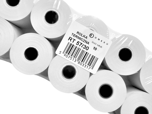 PRZEDMIOTEM SPRZEDAŻY JEST 1 OPAKOWANIE/10SZTUK MARKOWYCH ROLEK TERMICZNYCH OMEKO DO KASY FISKALNEJ/TERMINALI SZEROKOŚCI 57mm I DŁUGOŚCI NAWOJU 30mb.