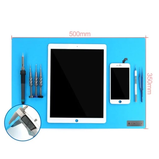 Mata o wymiarach 500mm na 350mm oraz płaskiej powierzchni idealnie sprawdzi się podczas prac lutowniczych. Wykonana z najwyższej jakości materiałów gwarantuje odporność na temperaturę do 500 stopni celsjusza.