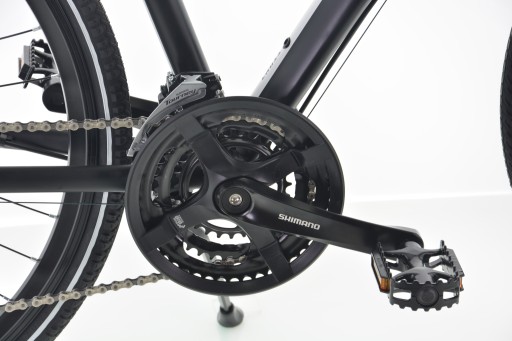 Ten lekki, oparty na sztywnej, aluminiowej ramie rower wyposażony jest w osprzęt ułatwiający jazdę w każdym terenie. 24-biegowy napęd renomowanej firmy Shimano ACERA z najnowszej serii M3000 napędza 28 calowe koła, zbudowane na wzmocnionych, dwu-ściankowych obręczach ubranych w super przyczepne opony CST TRAVELLER 700x40C, które w ryzach trzymają hydrauliczne hamulce Shimano. Komfortowa pozycja za kierownicą sprzyja długim, nie tylko terenowym eskapadom.