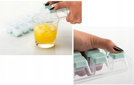 - Pojemnik ma silikonowe dno, umożliwia łatwe wyjmowanie kostek lodu