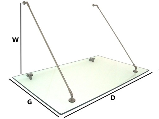 Daszek szklany 150x90 cm - szkło VSG-ESG, elementy ze stali nierdzewnej