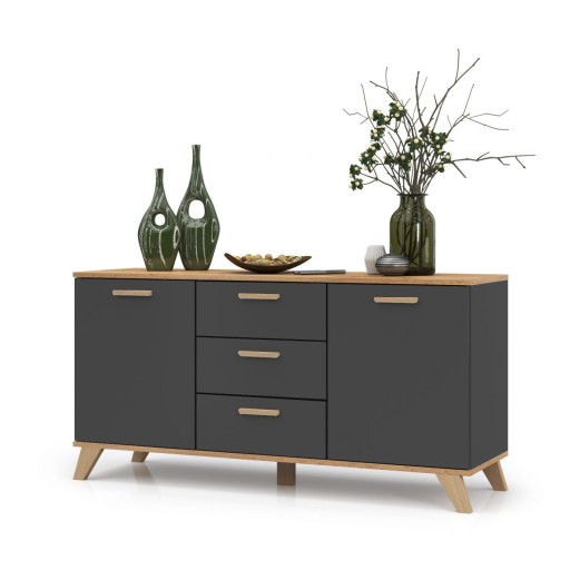 KOMODA SZAFKA RTV 3 SZUFLADY 2 DRZWI POJEMNA GRAFIT DĄB WOTAN 150 cm