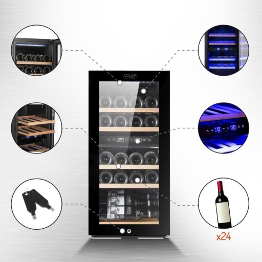 Lodówka na wino Adler AD 8080 24 butelki/60 litry z podświetleniem LED