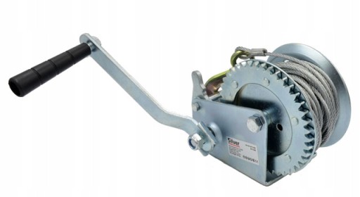 W wyciągarce zastosowano mocną i wytrzymałą linę stalową o długości 10 m, zakończoną solidnym hakiem z zabezpieczeniem przeciwko przypadkowemu wypięciu się obciążenia.