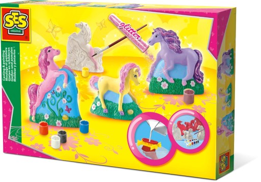 Odlewy gipsowe Koniki 3D z farbami + brokat