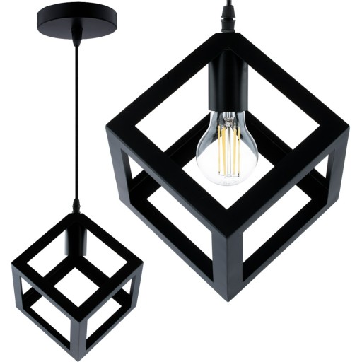 - Ciekawa, sześcienna konstrukcja klosza wykonanego z grubej blachy, w połączeniu z czarnym uniwersalnym kolorem stanie się niebanalną dekoracją o nieprzytłaczającej formie i będzie tworzyć znakomitą grę cieni, dzięki temu przyciągnie wzrok i nada pomieszczeniom niepowtarzalny charakter.