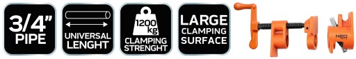 Ścisk śrubowy od marki NEO, przystosowany do pracy z rurami stalowymi DN 20/R o średnicy 3/4”. Z powodzeniem zastąpi ściski stolarskie typu F, oferując możliwość działań nielimitowanych długością bariery. Trwałe oraz niezawodne narzędzie składa się na dwa kluczowe elementy:
