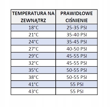 Prawidłowe ciśnienie w układzie klimatyzacji wskazywane przez manometr będzie się różnić w zależności od temperatury otoczenia.