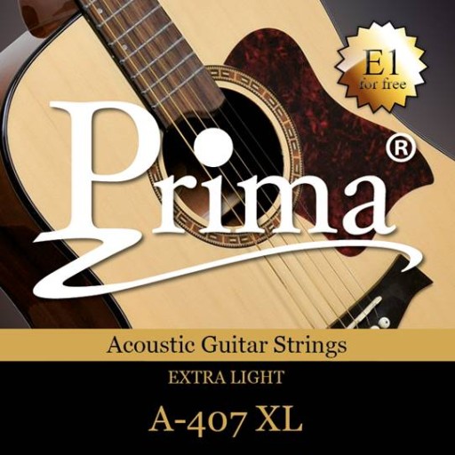 - KOMPLET STRUN DO GITARY AKUSTYCZNEJ Z ZAPASOWĄ E1 PRIMA A-407 ( GRUBOŚĆ DO WYBORU )