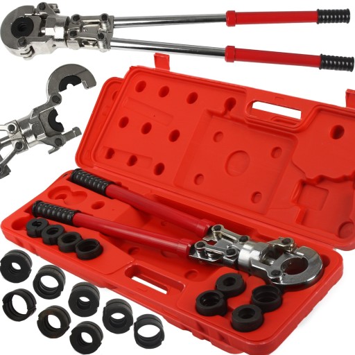 ZACISKARKA DO RUR PEX PRASKA RĘCZNA HYDRAULICZNA Cechy dodatkowe antypoślizgowe rączki obracana głowica teleskopowe ramiona wymienne szczęki