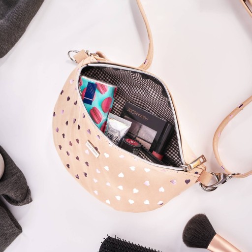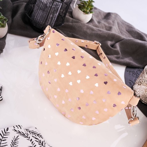 Saszetki nerki podbiły serca kobiet na całym świecie! W Paolo Peruzzi staramy się aktywnie podążać za obecnymi trendami modowymi i dlatego w naszej ofercie nie może zabraknąć modnych damskich saszetek nerek. Nasz model saszetki został wykonany z solidnej nubukowej skóry naturalnej z nadrukowanymi serduszkami. Serduszka na nerce pod światło mienią się barwami. Dzięki temu rozwiązaniu możesz idealnie dopasować torebkę do codziennych, casualowych stylizacji np. z sukienką, balerinami czy stylizacją w stylu boho. To solidna i praktyczna nerka, którą również możesz nosić na skos lub na ramieniu. To idealny model na wiosnę i lato jak i również na zimniejsze miesiące kiedy będziesz chciała przełamać jesienno-zimową aurę w swoim stroju. Dzięki solidnemu wykonaniu i trwałym surowcom zastosowanym do uszycia tej nerki polecamy ją szczególnie na prezent!