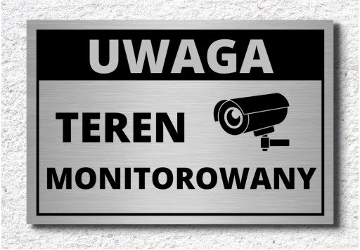 TABLICZKA SZYLD UWAGA TEREN MONITOROWANY ALUMINIUM MONITORING KAMERA WZORY