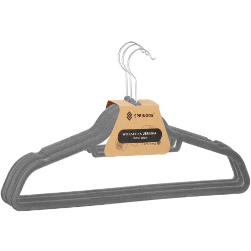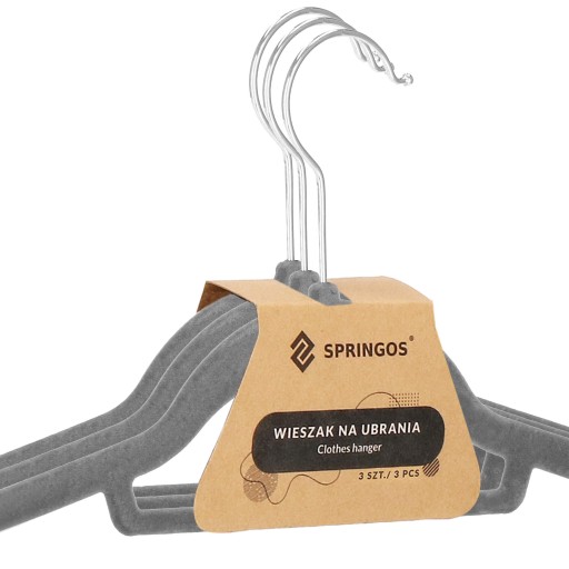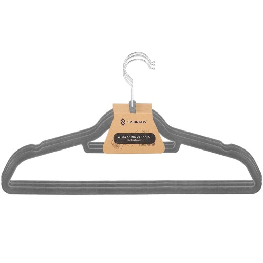 Zestaw 9 wieszaków ubraniowych marki Springos pozwala na idealne rozmieszczenie ubrań w szafie, bez ryzyka zagnieceń. Zawieszone na nich ubrania będą ładnie prezentować się w szafie, a co najważniejsze gwarantują łatwość odnajdywania zaplanowanej do założenia garderoby. Welurowe wykończenie sprawia, że doskonale sprawdzą się z umieszczonymi na nich delikatnymi materiałami.