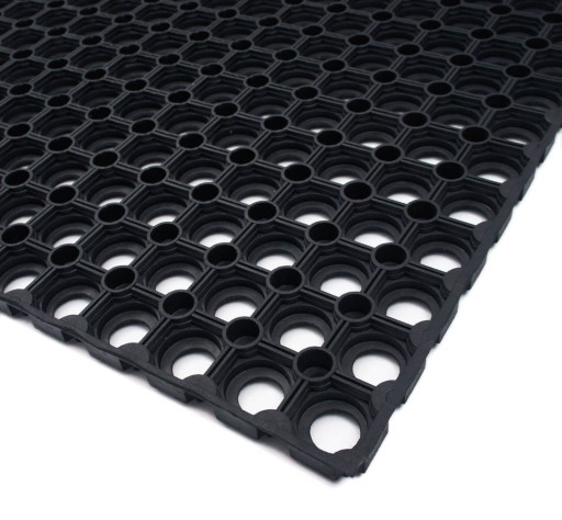 Wycieraczka została wykonana z najwyższej jakości gumy, dzięki czemu odporna jest na różnego rodzaju niekorzystne warunki atmosferyczne, takie jak deszcz, śnieg czy grad. Dzięki temu będzie cieszyć swoich użytkowników swoim niezmiennym wyglądem przez długi czas, nawet podczas intensywnej eksploatacji. Co więcej, ze względu na swoją doskonałą trwałość, odporność na ścieranie i uszkodzenia mechaniczne, prezentowany model wybierany jest często także jako wyposażenie sklepów, galerii handlowych, urzędów czy innych obiektów użyteczności publicznej.