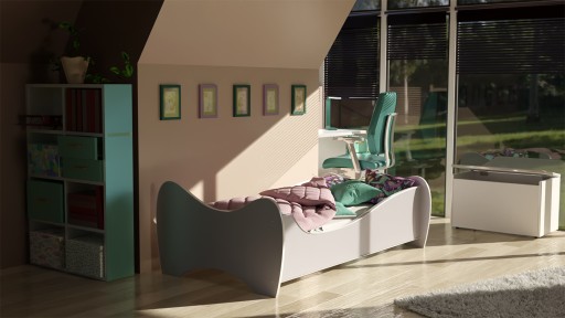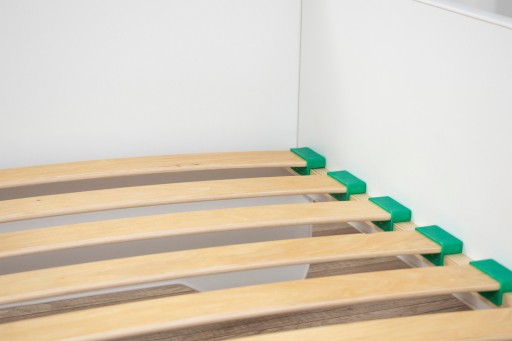 - W środku łóżka znajduje się mocowany do ścianek bocznych drewniany stelaż z listew sprężynujących, które gwarantują komfort snu.
