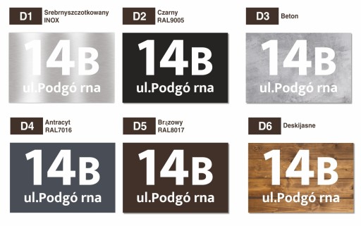 - tekst, który powinien znaleźć się na tabliczce wraz z informacją, czy nadrukować na nim skrót „ul.” (np. ul. Długa 13). Nie zapominaj o polskich znakach!