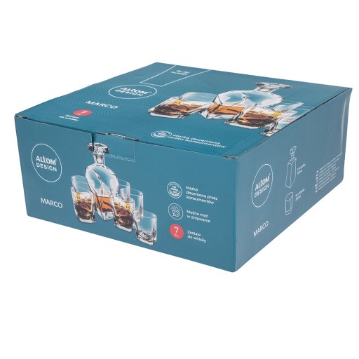 Zestaw do whisky, wody i napojów od marki Altom Design, to obowiązkowy element wyposażenia w każdym domu. Stylowy, minimalistyczny design idealnie się sprawdzi na co dzień, jak i podczas spotkań towarzyskich. Komplet został wykonany z wysokiej jakości szkła, dzięki czemu naczynia wspaniale się prezentują i zapewniają szyk i klasę podczas wszelkich uroczystości. Szkło jest higieniczne, nie wchodzi w reakcję z żywnością, dzięki czemu nie zmieni smaku ulubionego napoju.
