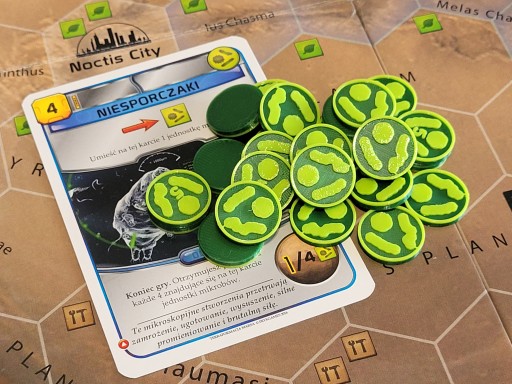Na innych aukcjach dostępne są pojedyncze zestawy tokenów, jak i klimatyczna wieża na karty, pojemniki z napisem MARS do gry Terraformacji Marsa. Sprawdź inne nasze aukcje!
