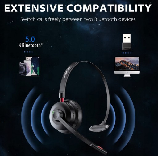 Ten zestaw słuchawkowy Bluetooth umożliwia jednoczesne połączenie z 2 urządzeniami Bluetooth, zapewniając większą dostępność i elastyczność. Oznacza to, że można bez trudu przełączać się z jednego urządzenia na drugie i nigdy nie trzeba tracić cennego czasu pracy. Ten trwały zestaw słuchawkowy został zaprojektowany do współpracy z wieloma urządzeniami, co zwiększa jego kompatybilność (nawet urządzenia nie obsługujące technologii Bluetooth można podłączyć za pomocą klucza sprzętowego USB).
