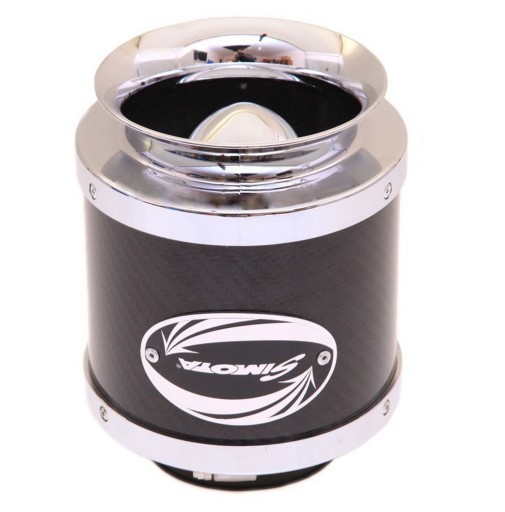 Filtr stożkowy Simota w carbonowej oddzielającej filtr od gorącego powietrza puszce dzięki temu cały układ pracuje zdecydowanie lepiej. Zapewnia większy dopływ zimnego powietrza do silnika, co powoduje przyrost mocy oraz większy moment obrotowy w całym zakresie obrotów oraz zapewnia oryginalny basowy dźwięk silnika.