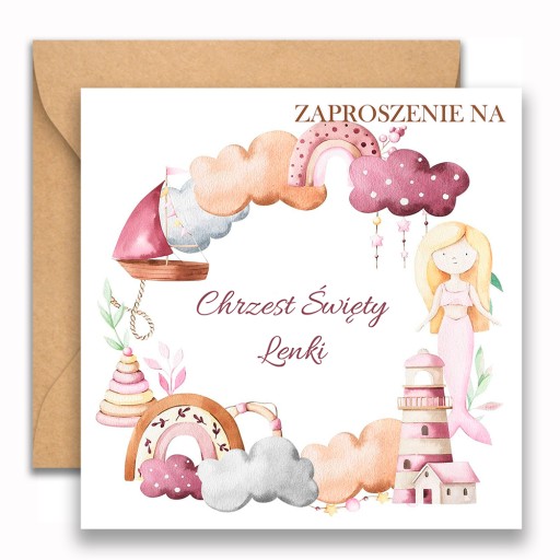 ПРИГЛАШЕНИЯ НА КРЕЩЕНИЕ ИМЯ 10 шт РУСАЛКА РАДУГА 065