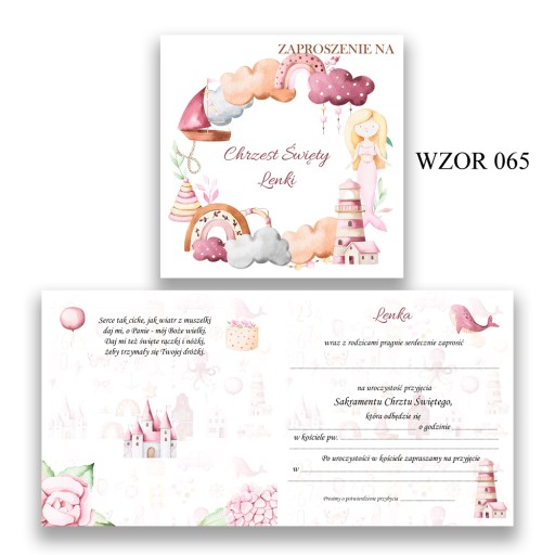 ZAPROSZENIA NA CHRZEST IMIĘ KOPERTA SYRENKA 065