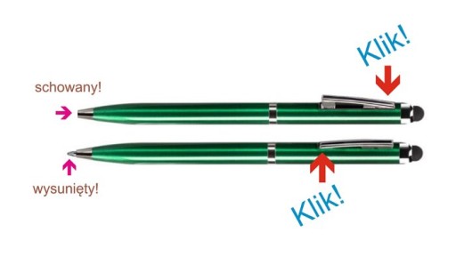 2 in 1 - z jednej strony tradycyjny długopis uruchamiany przez obrót a z drugiej strony precyzyjne narzędzie pozwalające na efektowną i szybką pracę na wszystkich urządzeniach (tabletach, smartfonach, telefonach, laptopach) wyposażonych w ekrany dotykowe.