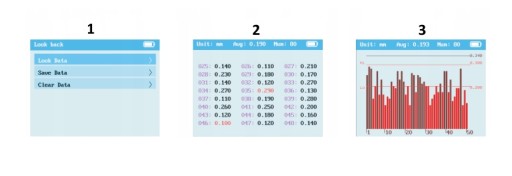 EKRANY: 1, 2, 3 - Mierzona wartość i podgląd poprzednich pomiarów: