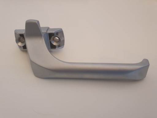 Klamka jest w kolorze srebrnym, z powłoką satynową.
