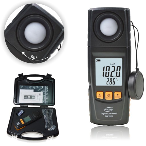 Luksomierz GM 1020 marki Benetech to narzędzie do pomiaru natężenia światła o zakresie 1-200 000 Lux . Urządzenie znajduje zastosowanie w wielu dziedzinach. Miernik może być użytkowany w przemyśle elektryczno-optycznym. Jest stosowany również do celów inspekcyjnych pomieszczeń w których pracują lub przebywają ludzie, a także przy hodowli roślin i zwierząt.