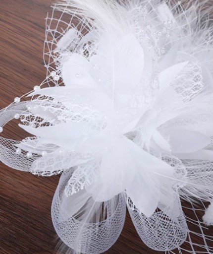Свадебный головной убор для волос №1, очаровательное украшение, белые цветы, перья, жемчуг