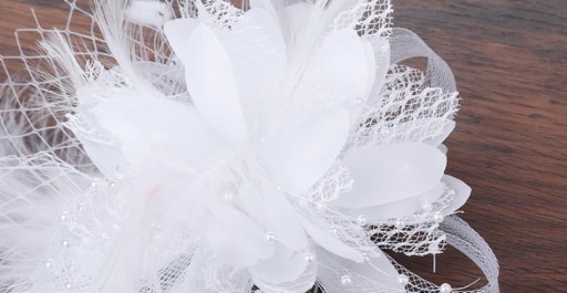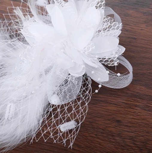 Stroik ślubny z piórami, kolor biały.