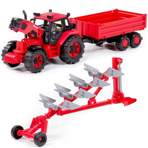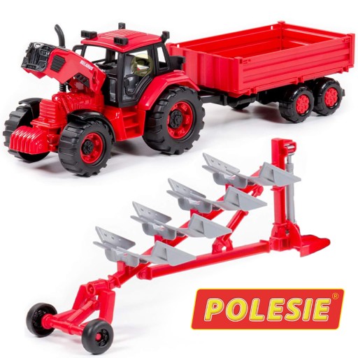 Polesie traktor Belarus z przyczepą i pługiem gratis czerwony 37cm 91345