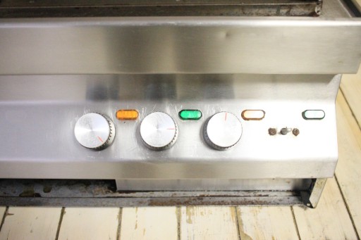 mamy do sprzedania widoczny na zdjęciach grill gładki 9 kW. Urządzenie było używane, posiada normalne ślady użytkowania. Oczywiście pod względem technicznym urządzenie jest sprawne, bardzo szybko się nagrzewa. Idealnie nadaje się do profesjonalnej gastronomii - resturacje, stołówki, food trucki i tym podobne. Na tej płycie w krótkim czasie można wysmażyć wiele sztuk mięsa.