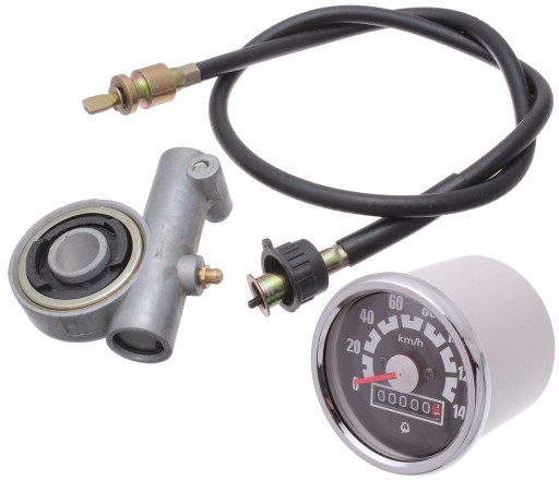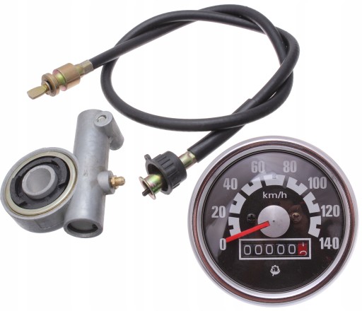 OPIS: FABRYCZNY LICZNIK PRĘDKOŚCIOMIERZ SZYBKOŚCIOMIERZ WYKONANY JAK ORYGINAŁ Z LAT 80-TYCH (WSZYSTKIE OZNACZENIA TAKIE SAME). JEST TO LICZNIK O ŚREDNICY 70mm MONTOWANY NP W LAMPE Z PLASTIKOWYM KOMINEM + NAPĘD LICZNIKA ŚLIMAK + LINKA. PRODUKT WYSOKIEJ JAKOŚCI.