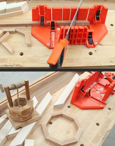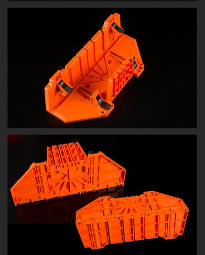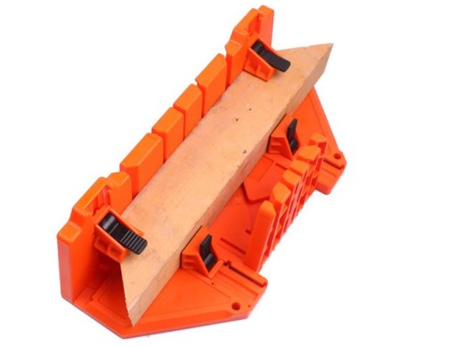 Skrzynka uciosowa, ukosowa, przyrżnia kątowa wraz z piłą oraz 4 trójkątami dociskowymi.