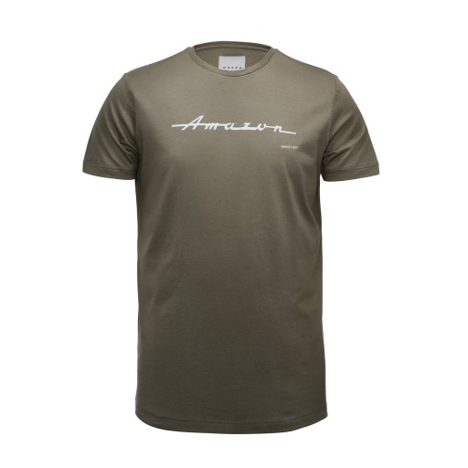 T-shirt wykonany w 70% z bambusa i w 30% z bawełny organicznej, z nadrukiem logo klasycznego Amazona.