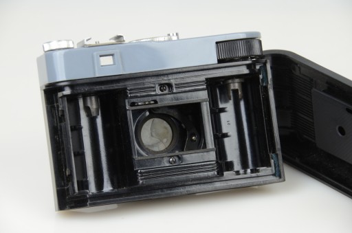 Stan aparatu widoczny na zdjęciach. Sprzęt kolekcjonerski, kilkudziesięcioletni, nie czyszczony, nie testowany z filmem. Migawka sprawna, może wymagać regulacji bądź przesmarowania.
