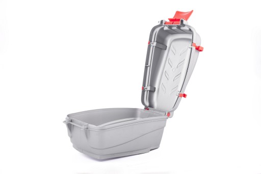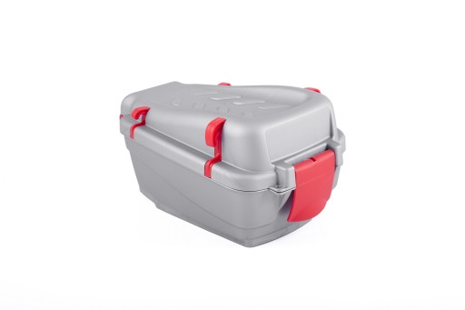 Kufer rowerowy wykonany z solidnego tworzywa sztucznego.