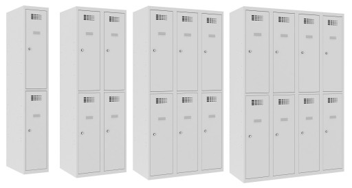 4-skrytkowa szafa metalowa o stabilnej konstrukcji, wyposażona jest w plastikowy drążek, wieszaki ubraniowe oraz samoprzylepny plastikowy wizytownik.