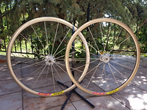 Szosowe koła zbudowane na obręczach RIGIDA DP18, piastach TOMO 9speed oraz szprychach DT SWISS Aero. Rozmiar: 700C. System osi: przód 9x100mm QR, tył 10x130mm QR. Pod tradycyjne opony. Masa koła przedniego: 908g, tylnego: 1135g.