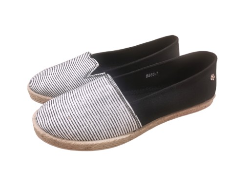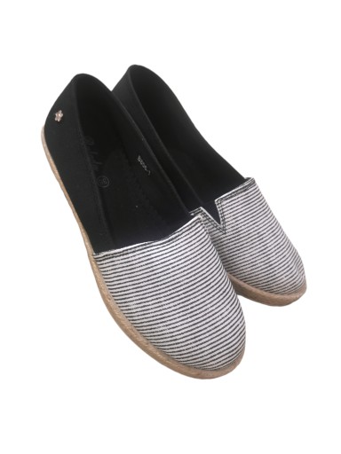 IDEALNE DO KAŻDEJ STYLIZACJI ZARÓWNO ELEGANCKIEJ JAK I SPORTOWEJ CZARNE TRAMPKI TYPU ESPADRYLE W BIAŁE PASKI.