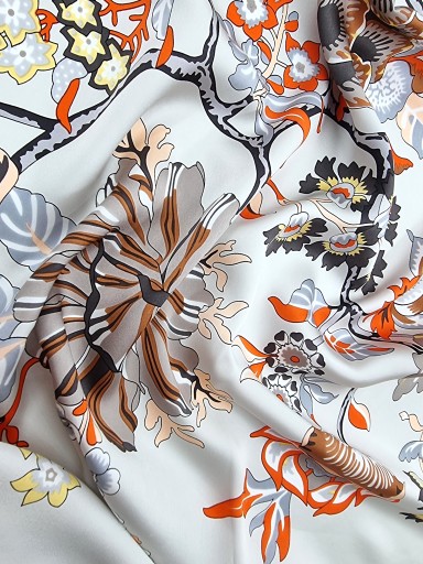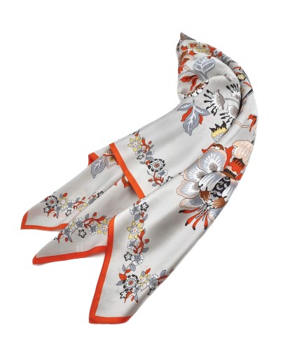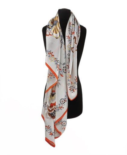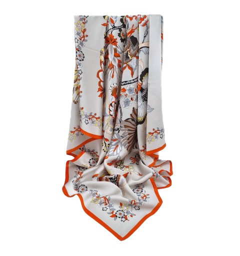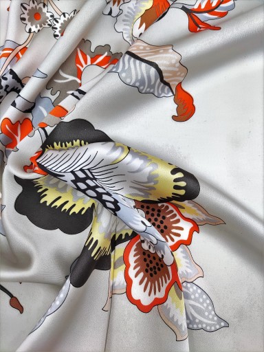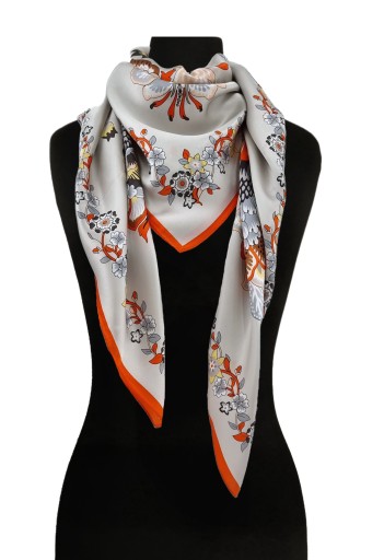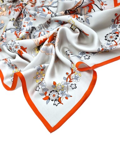 Przepiękna jedwabna chusta, marki LaDorena wykonana z najwyższej jakości naturalnej ciężkiej satyny jedwabnej o rzadko dostępnej grubości aż 16 M/m, Wymiary 105x105 cm. Chusta zachwyci każdą elegancką kobietę.