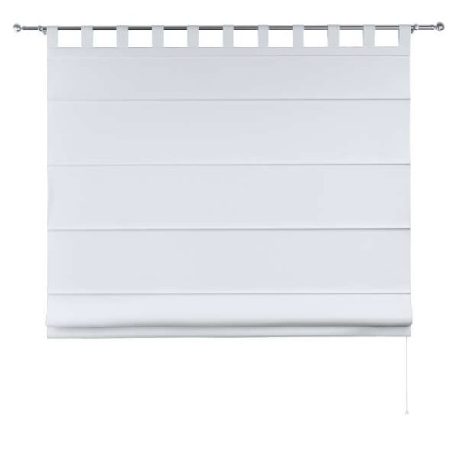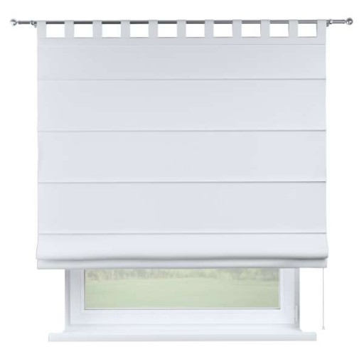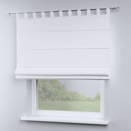 Roleta rzymska Verona na szelkach, do zawieszania na karniszu rurowym. Wykończona na prosto bez falbany. Szelki mają długość 10 cm.