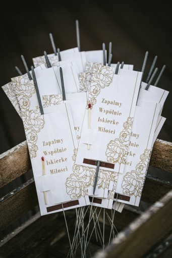 Oferujemy Państwu zimne ognie wyprodukowane specjalnie pod wesela o długości 40 cm, 60 sztuk. Idealna oprawa na ślub. Aukcja dotyczy sprzedaży zimnych ogni - karteczki ze zdjęć można dokupić na osobnej aukcji.