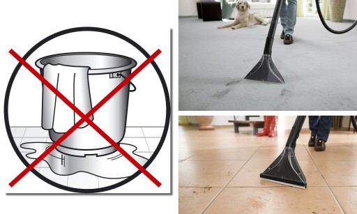 Posiadając odkurzacz SE 4001 marki Karcher nie potrzebujesz już mopa. Co więcej - nie musisz czekać aż czyszczona powierzchnia wyschnie - jest ona sucha w momencie mycia. Myjąc podłogę spryskujemy ją wodą wraz z roztworem chemicznym jednocześnie odsysając wodę wraz z brudem, piaskiem oraz innymi zanieczyszczeniami. Dzięki gumowym listwom na dyszy podłogowej odkurzacz dokładnie zbiera naniesioną wodę co powoduje iż podłogowa od razu jest sucha.