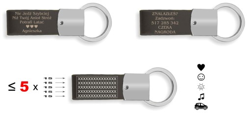 - Treść graweru na tylnej stronie breloczka (informacje dotyczące opcji graweru przedstawione powyżej)